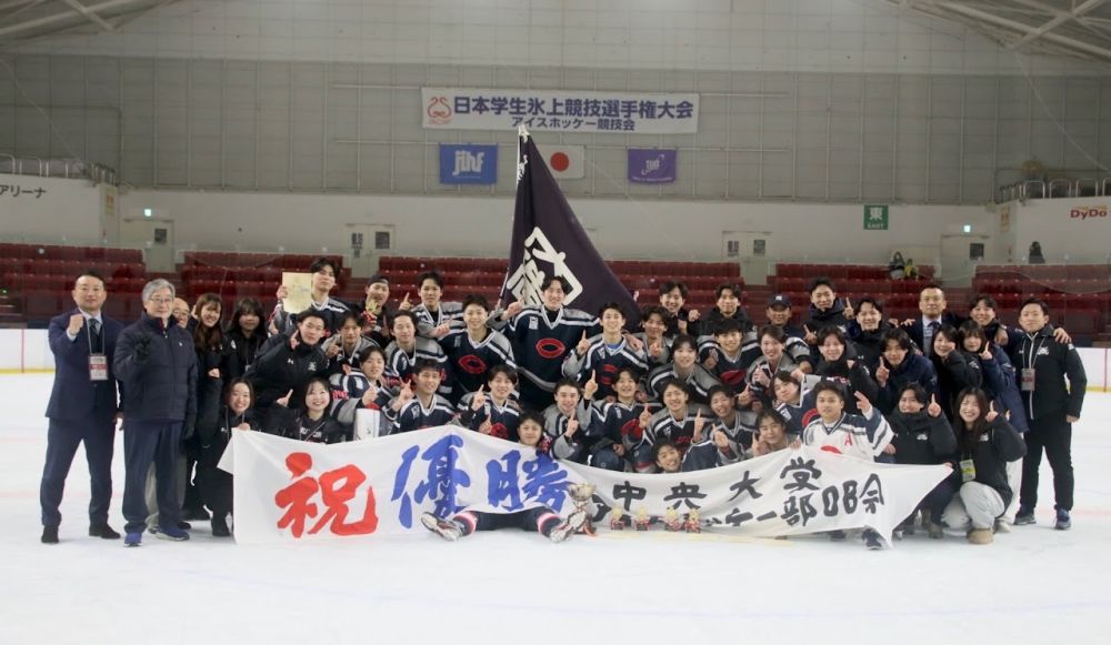 2025年12月25日~28日に開催されました、第98回日本学生氷上競技選手権大会のアイスホッケー部門ファーストディビジョンに本学スケート部が出場し、昨年に続く大会連覇を果たしました。