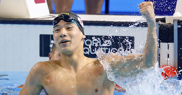村佐達也選手が学長・理事長に世界水泳メダル授賞報告