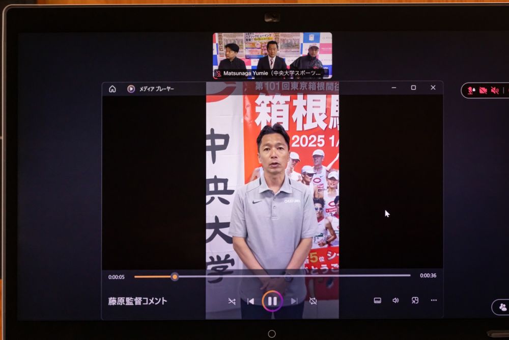 続けて、藤原正和陸上競技部駅伝ブロック監督から応援してくださるみなさまへのメッセージ動画が公開され、会場が盛り上がったところでレースがスタート。