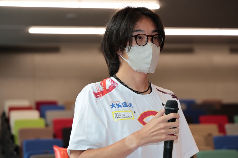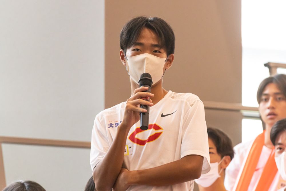 インタビューに答える辻󠄀誉選手(文学部1年)