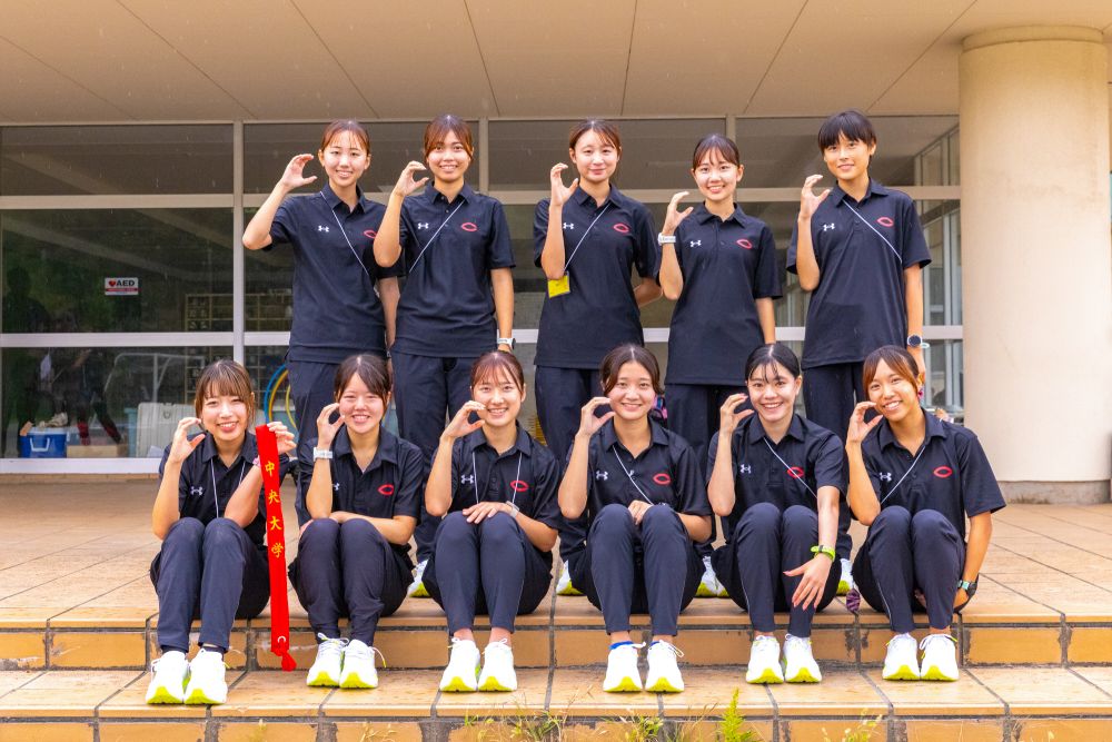 2025関東大学女子駅伝にて、笑顔でCマークの部員たち(写真提供:中央大学女子陸上競技部OG会)