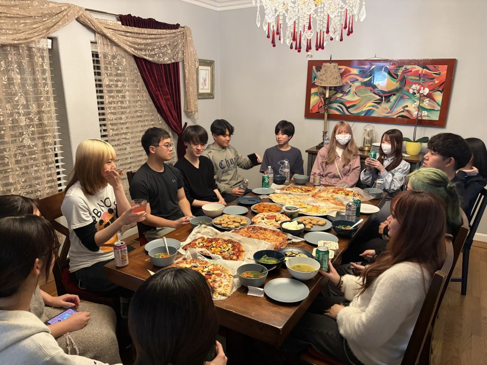 各自で航空券の手配をし、いざシリコンバレーへ。事前研修期間中は、オンラインでのコミュニケーションがメインでしたが、空港ではすでに積極的に交流していました。米国到着後は、宿泊先で早速ピザパーティを実施しました。旅の疲れを感じず、次の日から始まる研修に向けて、交流を深めました。
