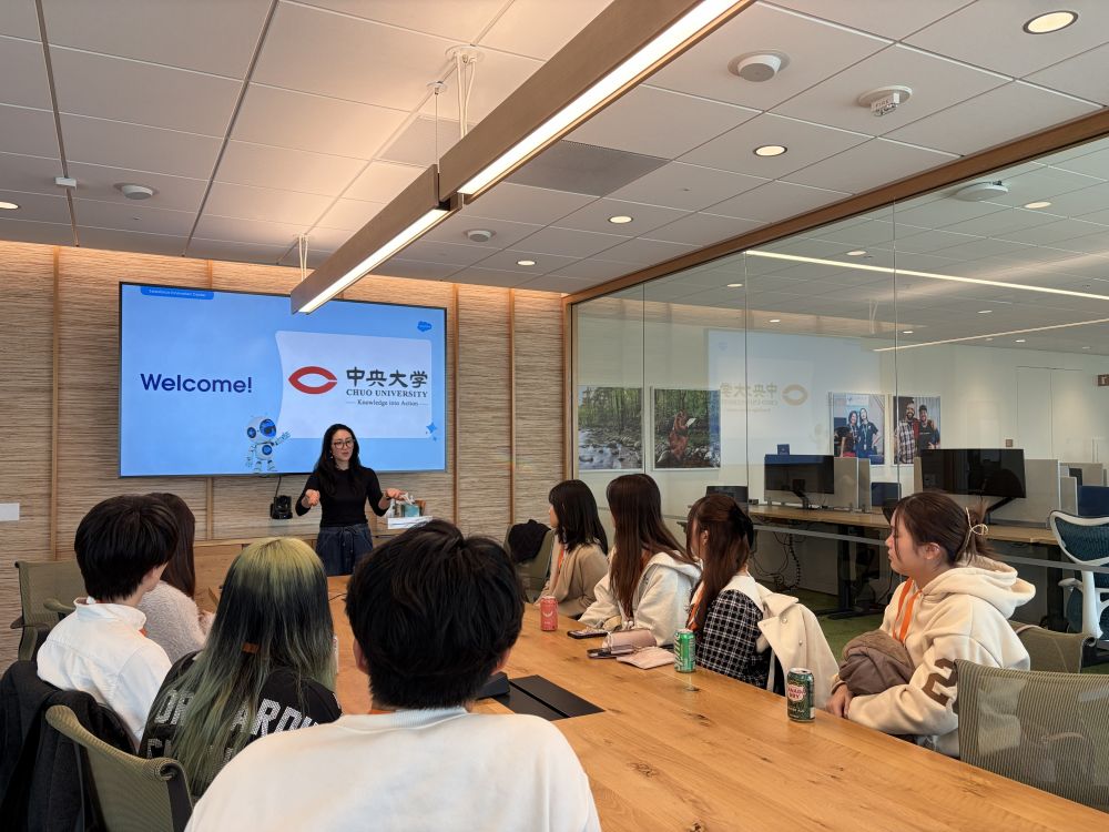 午前中は、スタンフォード大学の日本語のクラスに参加し、日本語を学ぶ学生と交流。中央大学生は積極的に英語を活用し、スタンフォード大学生は日本語を活用して、それぞれの出身国や米国と日本の文化の違いなどを話し合いました。また、Panasonicでご活躍されている植原様に、現在の仕事を通して目指している目標などご講演いただきました。