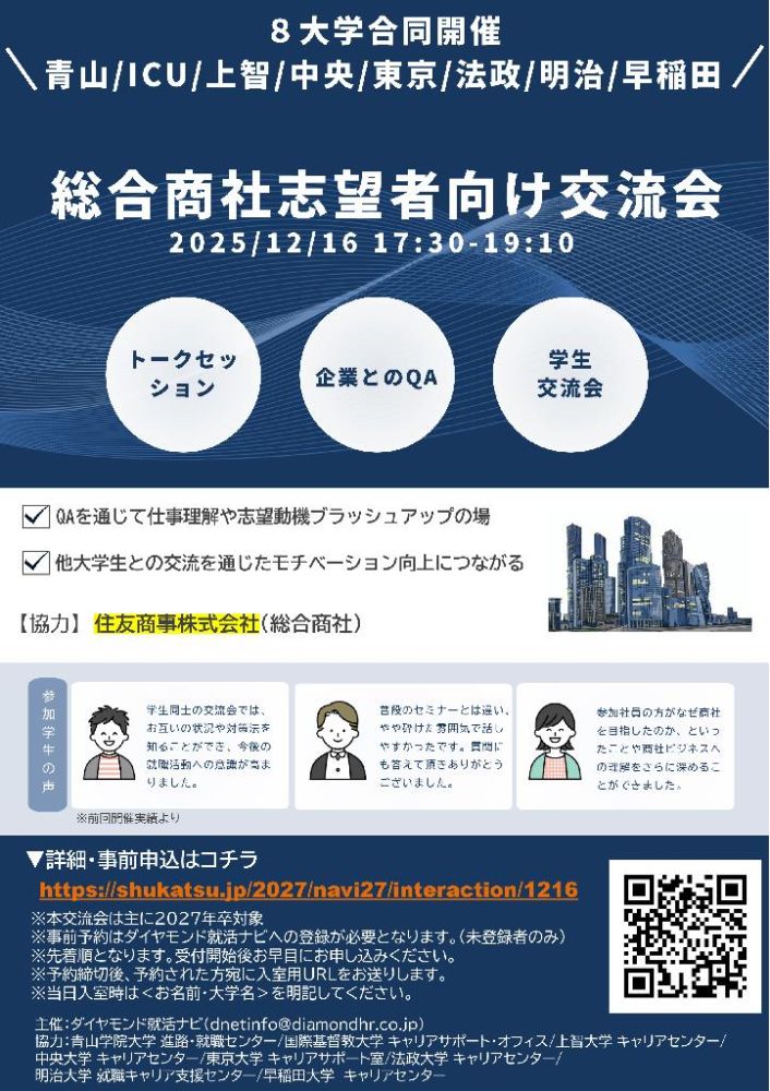 (27卒対象)「総合商社志望者向け交流会(8大学合同)」のお知らせ