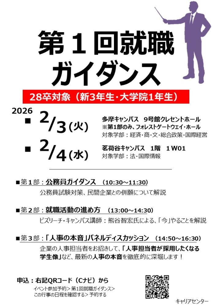 対象:経済学部、商学部、文学部、総合政策学部、国際経営学部・2/4(水)茗荷谷キャンパス 1階 1W01教室