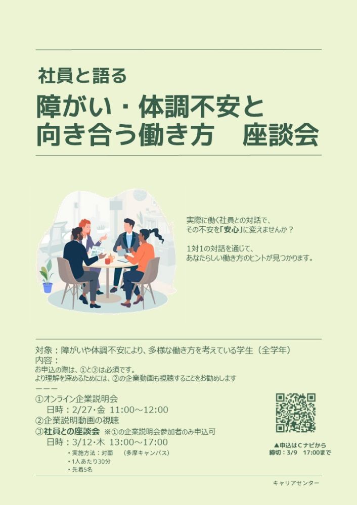 【全学年対象】「障がい・体調不安と向き合う働き方 座談会」開催のお知らせ