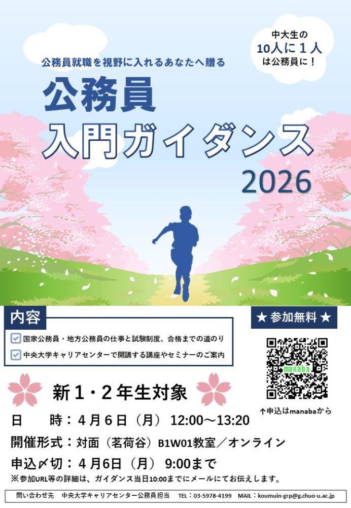 2026年4月6日(月)9:00までにmanabaの申込フォームより申込。※参加費無料