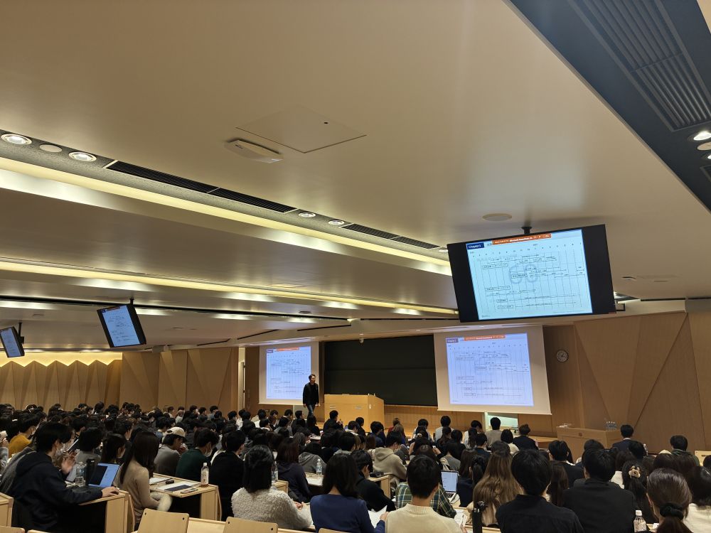 第2部「就職活動の進め方」ではビズリーチ・キャンパス講師の熊谷智宏氏に講演いただき、2月・3月の具体的な過ごし方や、ワークを通じて自己分析や業界・研究の大切さとともに卒業生訪問のメリットを解説していただきました。学生が熱心にワークに取り組み、自身と向き合う場面が印象的でした。