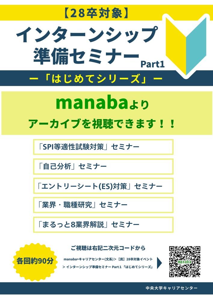 【28卒対象】インターンシップ準備セミナー Part1「はじめてシリーズ」オンデマンド視聴のご案内