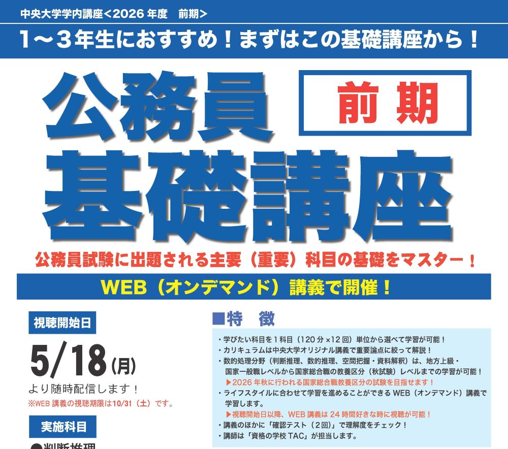 『2026年度前期 公務員基礎講座』のお知らせです。