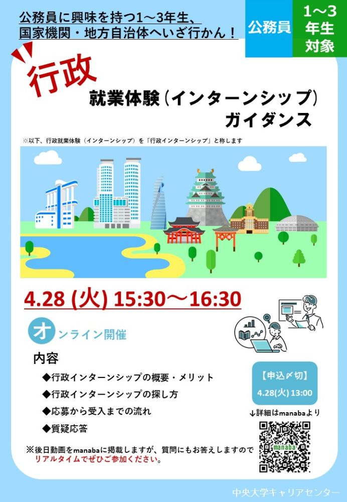 【公務員】行政就業体験(インターンシップ)ガイダンス(1~3年生対象)