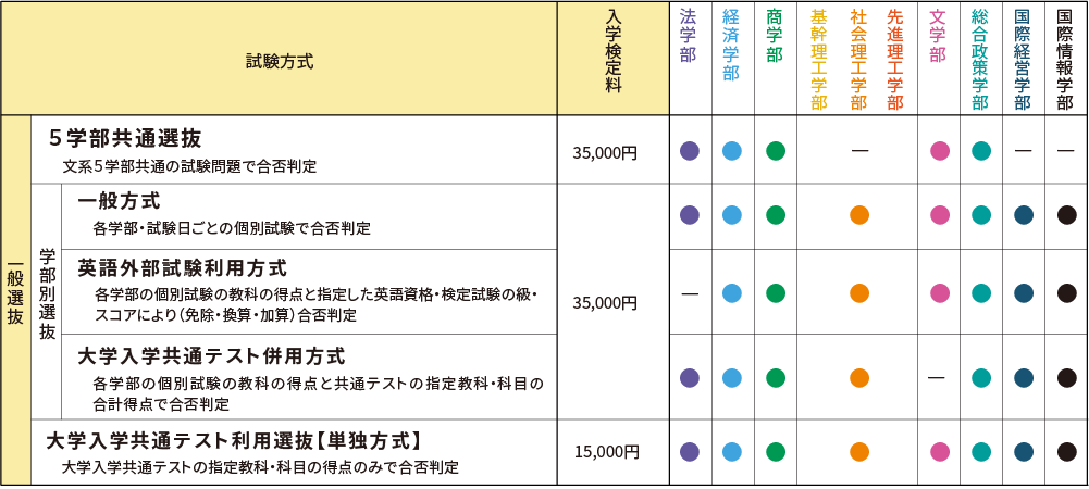 法学部経済学部商学部基幹理工学部社会理工学部先進理工学部総合政策学部国際経営学部国際情報学部