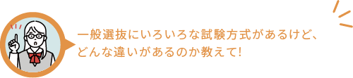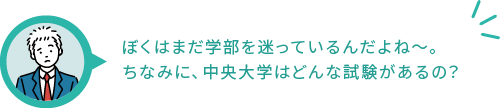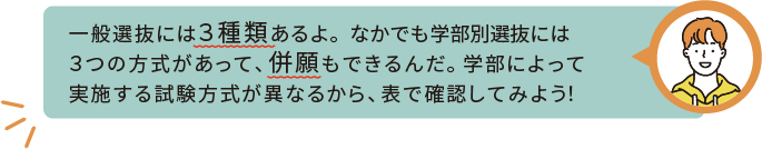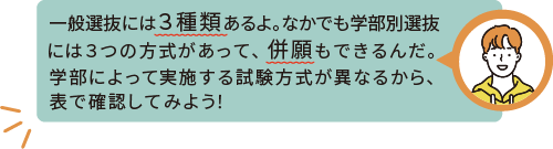 学部ごとに行われる個別の入学試験。1日で複数の試験方式を併願できます。