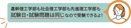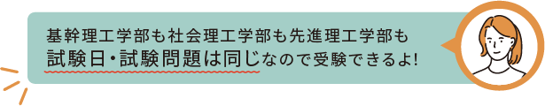 基幹理工学部・社会理工学部・先進理工学部の試験日・試験問題は同一です。