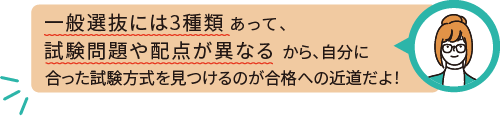 個別試験(一般方式と同一)の指定科目の得点と合わせて合否を判定します。