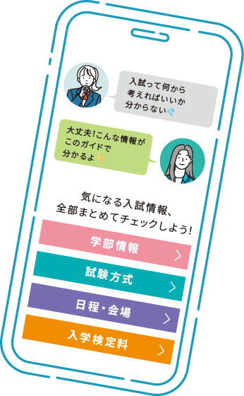 Webサイト内の「入学試験要項」を必ず確認してください。出願時に必要な各種手続き(Web出願登録、入学検定料の納入、出願書類の郵送)に備え、早めに出願手順を把握しておきましょう。紙媒体の「入学試験要項」や願書は発行しないためご注意ください。