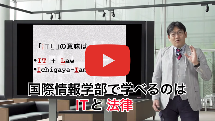ICTに関する知識と、社会のルールも含む法学の理論や情報に関する法律の知識、つまり工学と法学の2つの学問を複合的に学べるのが特徴です。さらに倫理や哲学といったグローバルな価値観を身につけ、それぞれの知識を統合した視点や、変化に柔軟に対応できる思考力を修得することができます。