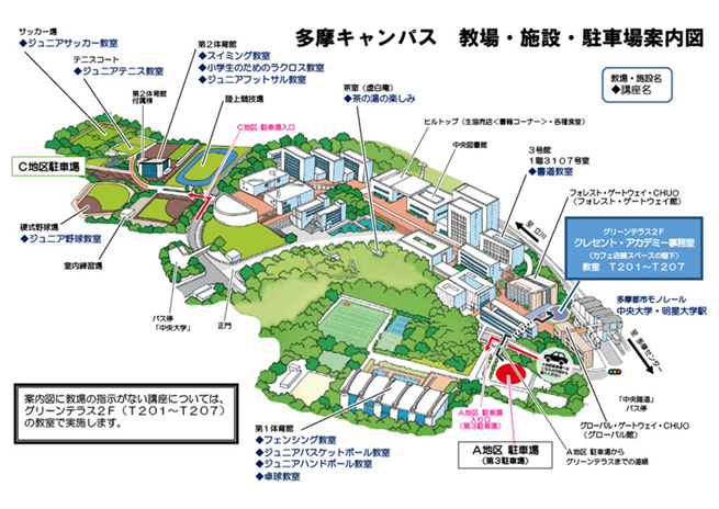 - 京王線・小田急線「多摩センター」駅 バス12分/バス停「中央大学」で下車