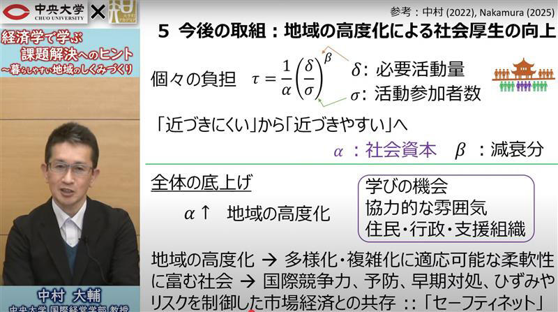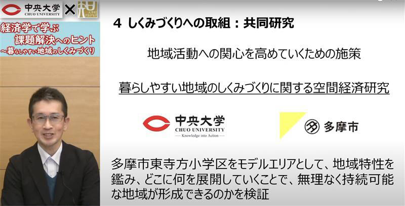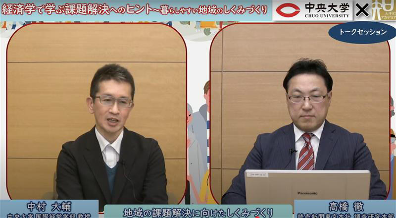 The ninth webinar in the Otemachi Academia collaborative course, which was organized jointly by Chuo University and the Yomiuri Newspaper to give back the invaluable knowledge cultivated by the university to society, took place on February 13. The webinar talked about how regional challenges should be addressed from an economic point of view. Professor Nakamura gave a lecture first, which was then followed by a talk session with Chief Research Officer Takahashi and a Q&A session.