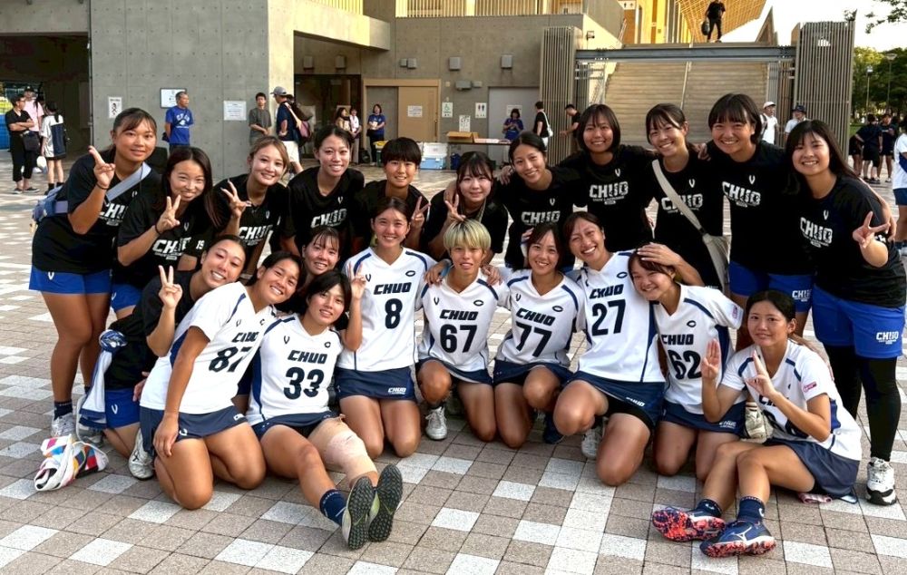 女子ラクロス部のチームメイトと記念の一枚。一番左が小保方さん(2025年9月)
