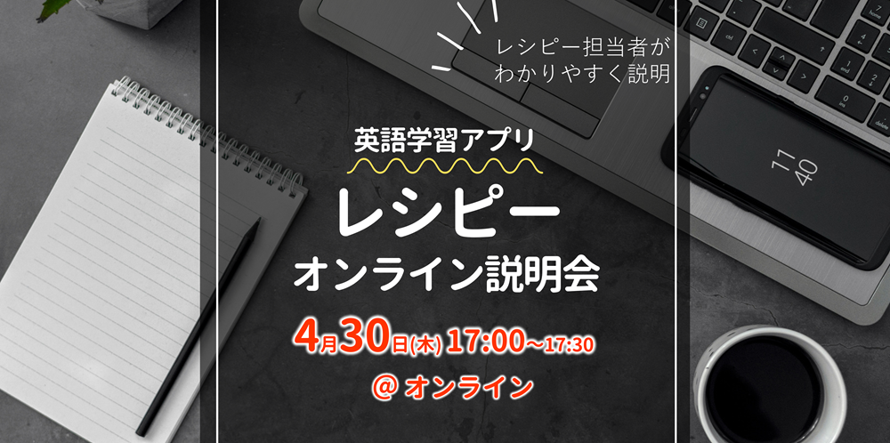6月1日に受講スタートする「英語学習アプリ レシピー4カ月コース」の説明会を開催します!
