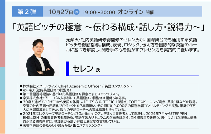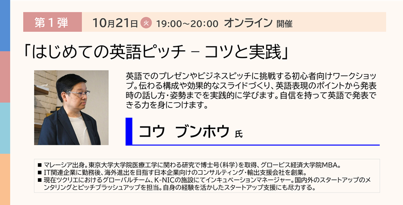 - 2025年10月21日(火)19:00~20:00、10月27日(月)19:00~20:00 ※単回のみの参加もOK