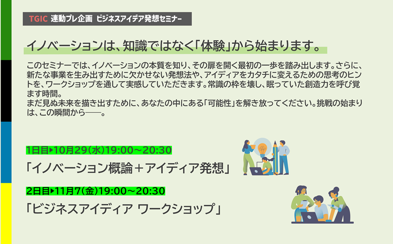 "TOKYO GLOBAL INNOVATION CHALLENGE" 連動プレ企画 「2DAYS ビジネスアイデア発想セミナー」