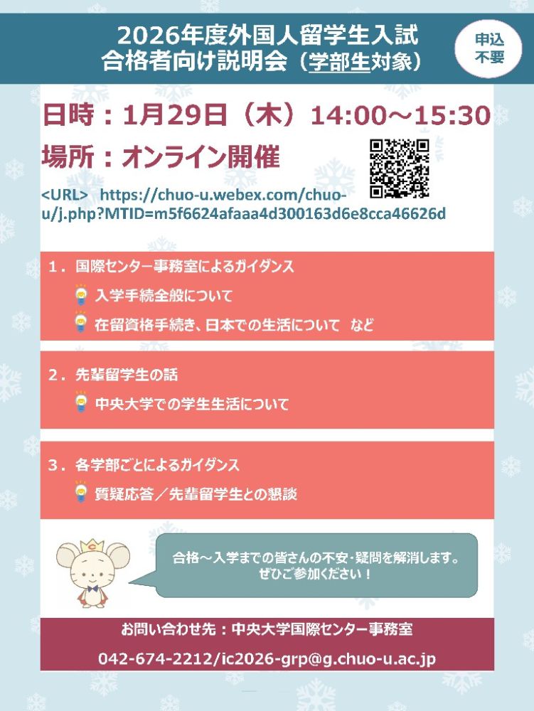 2026年度外国人留学生入試合格者向け説明会(学部生対象)