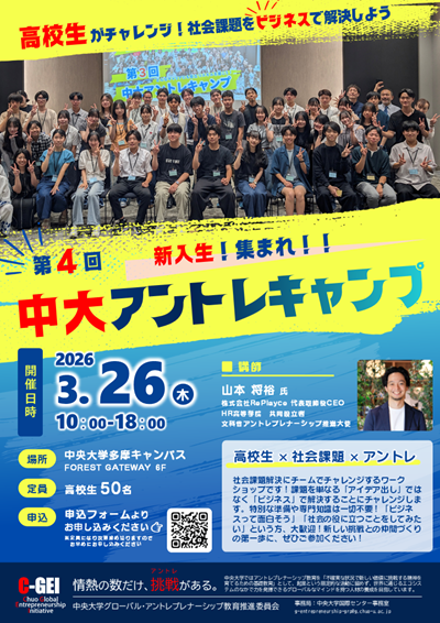 第4回 中大アントレキャンプ 参加者募集!高校生×社会課題×アントレプレナーシップ
