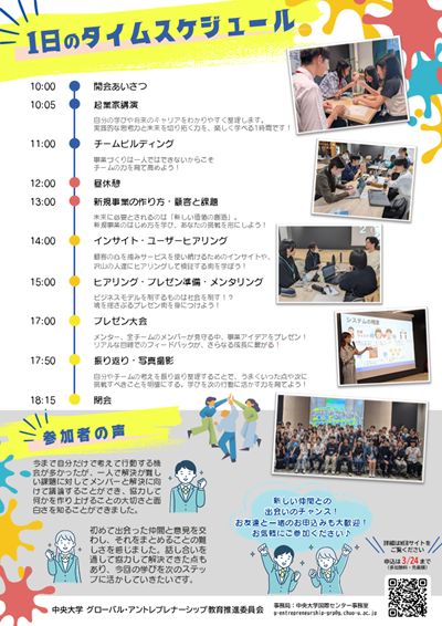 ※定員になり次第締め切りますのでお早めにお申込みください▼第3回中大アントレキャンプの様子