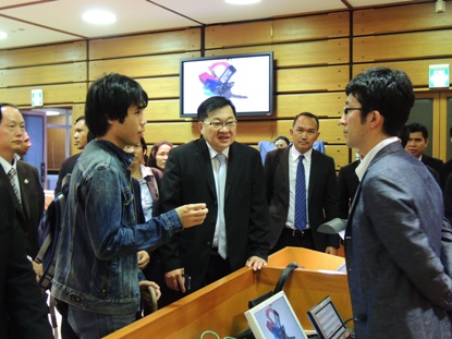 当日、一行は市ヶ谷キャンパス内にある裁判員裁判に対応した模擬法廷を見学。その後は日本とタイ王国の裁判制度および裁判官の業務について、藤原靜雄法務研究科長、加藤新太郎法務研究科教授、中山隆夫法務研究科教授、山田八千子法務研究科教授、石塚花絵法務研究科助教との間で懇談が行われました。一行は日本における裁判制度の特長や裁判員制度について高い関心を寄せており、活発な意見が交わされました。