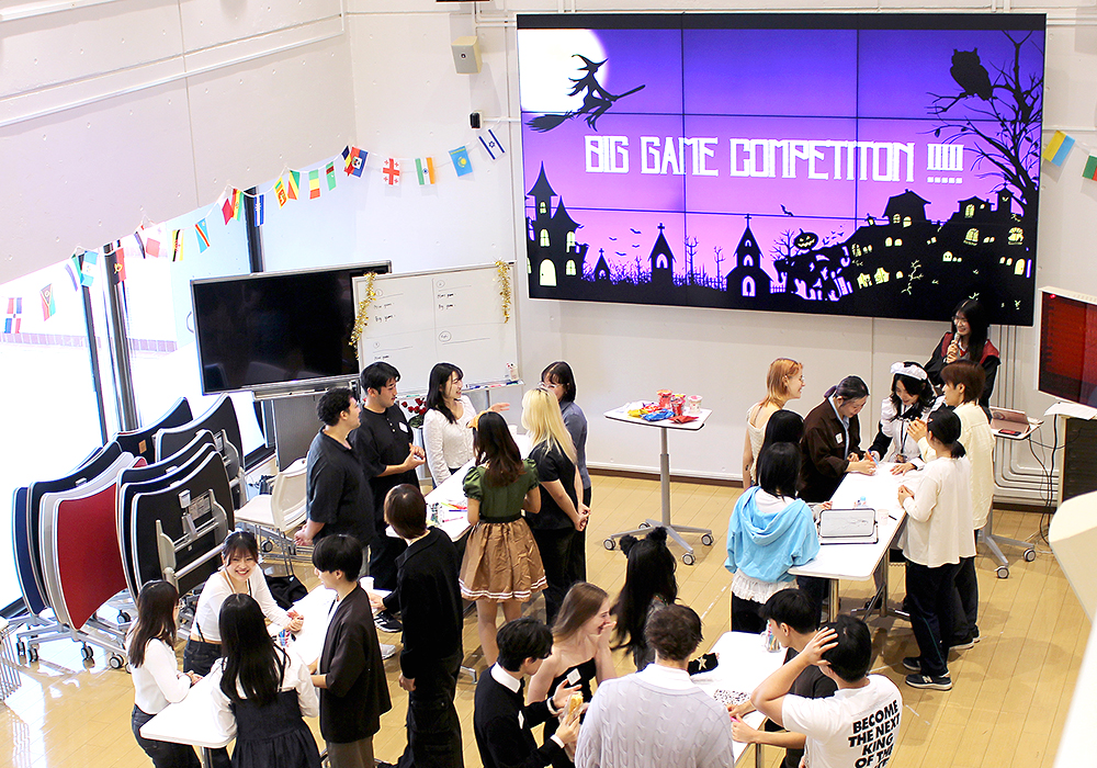 2025年10月17日(金)、多摩キャンパス ヒルトップ2階の異文化交流ラウンジ「Gスクエア」にて、「Halloween Quiz Party」が開催され、ヨーロッパやアジアなど10か国以上からの留学生を含む、約40名の学生が集まりました。