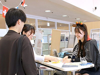 留学生と笑顔で語り合う学生たち