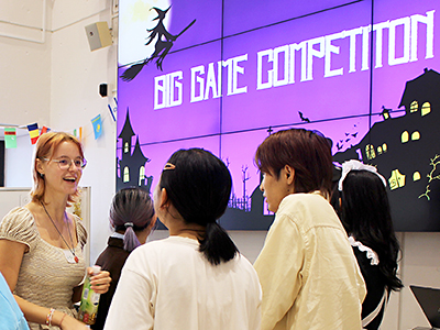 前半の「Mini Game」では、参加者が3チームに分かれ、制限時間内に次々とクイズに挑戦しました。ハロウィンの由来から数学の応用問題まで、幅広いテーマが出題され、チーム内で意見を出し合いながら答えを導き出す姿が見られました。協力し合ううちに自然と会話も弾み、チームワークが深まっていきました。