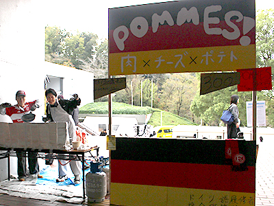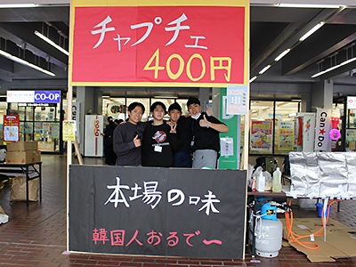 ペデストリアンデッキ下の模擬店エリアでは、日本をはじめアジア、アメリカ、ドイツ、フランスなど多国籍な料理が並び、学生たちの活気あふれる声が飛び交いました。