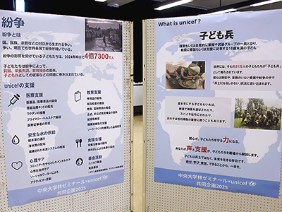 ユニセフが取り組む支援活動や世界の子どもたちが直面する課題を伝えるパネル展示