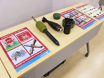 地雷模型を通して、その危険性と終戦後も続く被害について学ぶ