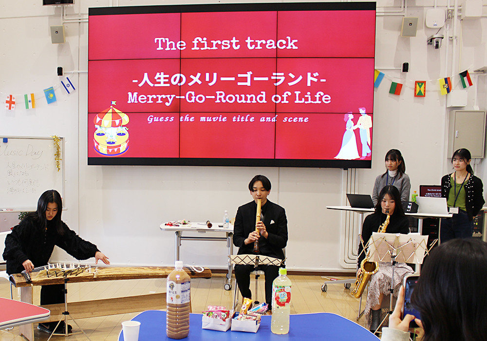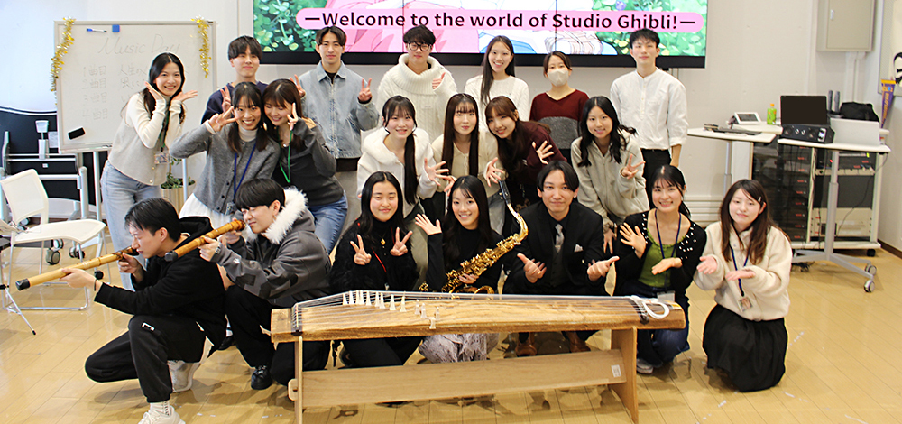 2025年12月12日(金)、多摩キャンパス ヒルトップ2階の異文化交流ラウンジ「Gスクエア」にて「MUSIC DAY」が開催され、音楽好き、ジブリ好きの学生たちが集まりました。
