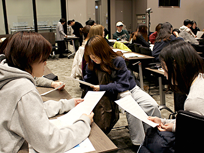 日本語と英語、2種類の資料を読み比べる学生たち