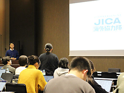 内山さんからは、JICA海外協力隊の概要や、隊員に対する支援制度について説明がありました。