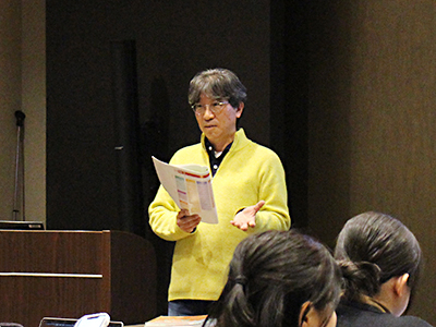 イラストやクイズを交えながら、学生たちに語りかける内山さん