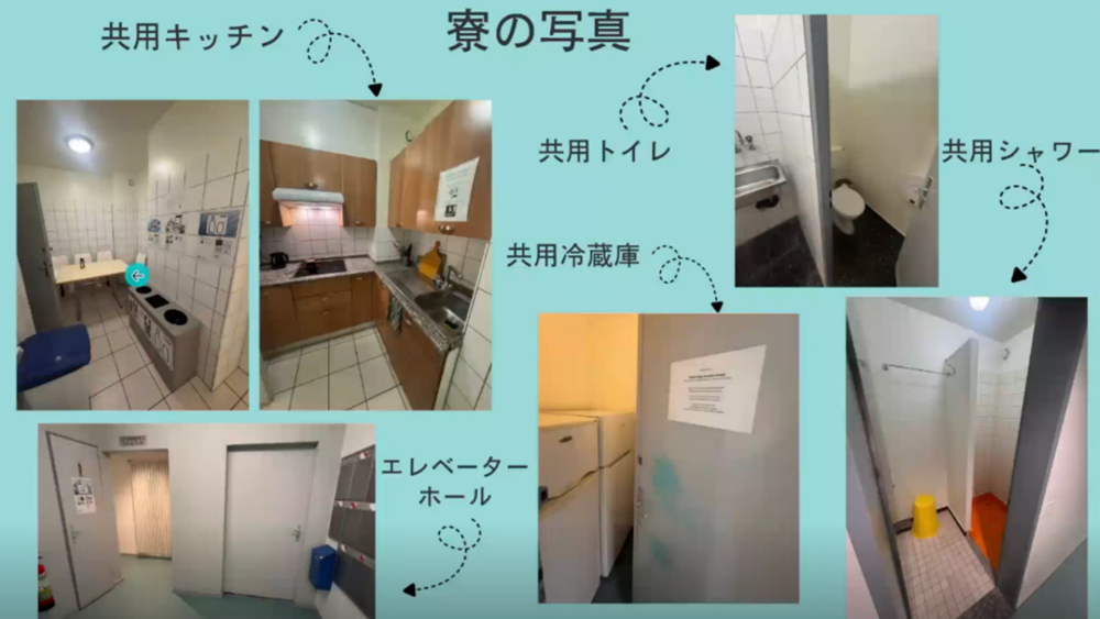 寮は、個室を基本とし、キッチンやシャワー、トイレは共用となっています。16人でコンロ4口のキッチンを共有しています。メンバーの国籍は欧米、中南米、アジア、アフリカにわたり多様です。