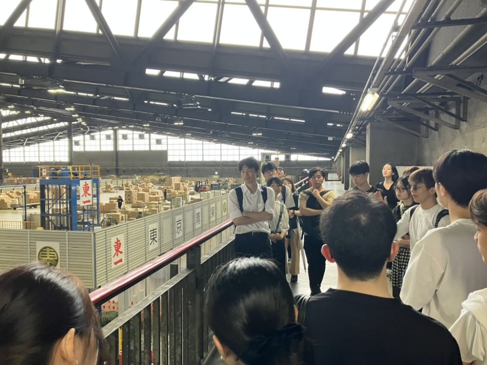 左今CEOのガイドのもと、青果のセクションを中心に巡りました。市場内では、農家と卸売業者の関係性や流通の仕組みなど、食や農業に関するさまざまな説明を受けました。食農の現場を知るCEOからのリアルな視点を交えた解説に、学生たちは熱心に耳を傾けていました。