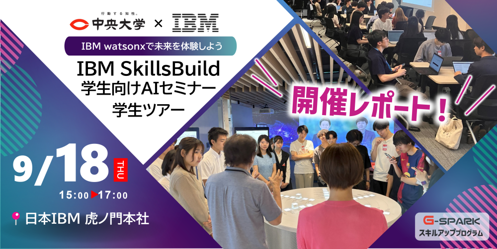 2025年9月18日、中央大学では、アントレプレナーシップ教育推進の一環として、IBMの最新AI技術「watsonx」を実際に体験できる【IBM SkillsBuild 学生向けAIセミナー 学生ツアー】を開催しました。