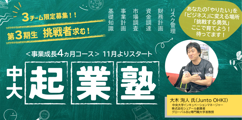 11月上旬スタート 中大起業塾<事業成長コース>