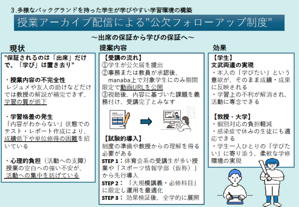 授業アーカイブ配信による公欠フォローアップ制度