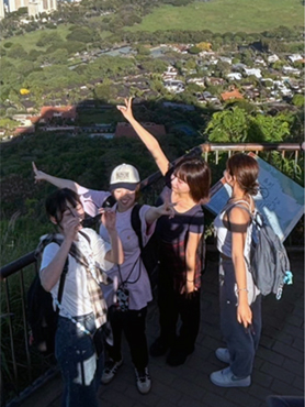 - 現地研修以外の時間では、ハワイならではの観光地を巡りました。特に印象的だったのはダイヤモンドヘッドで、早朝に上り、頂上から見た景色は一生忘れることはできません。様々な国籍の人々が訪れており、ハワイの観光地としての素晴らしさに改めて気づかされました。また、休みの日にオフキャンパスツアーとして、パールハーバーを訪れました。現地での様々な資料や、施設を通して、当時の惨状やその歴史について多くのことを学ぶことができました。