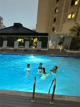 - 現地では、時間を有意義に使うことを常に意識して過ごしました。ホームステイ先がワイキキビーチ近くという最高の立地を活かし、朝は友達とビーチに行き日焼けをし、放課後は現地の友達とスポーツや観戦を楽しみました。夜はホームステイ仲間と食事をし、ホストファミリーからダンスを教わるなど、毎日が充実していました。印象に残っていることは、現地の方がとにかく優しくオープンマインドであったことです。道端で困っているとすぐに声をかけてくれたり、にっこりと微笑んでくれたり、何かあったらすぐに手を差し伸べてくれる温かい環境で楽しく安全に過ごすことができました。