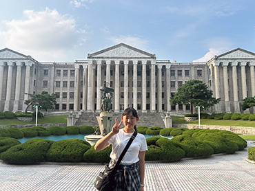 - 学習面では、常に韓国語を話す環境に置かれることで、人は大きく飛躍できることを知りました。韓国にいると、毎日がインプット、アウトプットの繰り返しでした。それを踏まえ、今後は少しでも声に出して話してみる、覚えた文法、単語を自分で応用していこうと思いました。生活面では、カルチャーショックを楽しむことが大事だと思いました。留学初日はカルチャーショックによって、日本に帰りたい気持ちが強かったですが、次第にその違いが面白いと思えるようになりました。また、私は大学で留学生の授業サポートを行っているため、自身のこの経験を通じて、中央大の留学生への接し方を考え直すきっかけとなりました。異国の地で生活を送る留学生に、困っていたら手を差し伸べてあげられる人になりたいです。