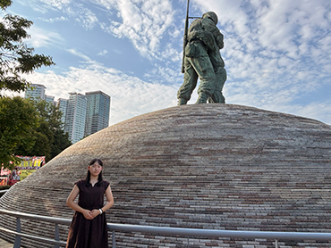- 幼い頃から韓国ドラマが好きで、韓国語や韓国の文化に興味がありました。しかし、文学部では韓国語が抽選科目であり、学ぶ機会がなかったため、思い切って韓国に行って学ぼうと思い、今回の留学を決めました。キョンヒ大学に決めた理由としては、ソウルに位置しているため、休日に観光がしやすい点、壇国大学より研修期間がより長い点が挙げられます。